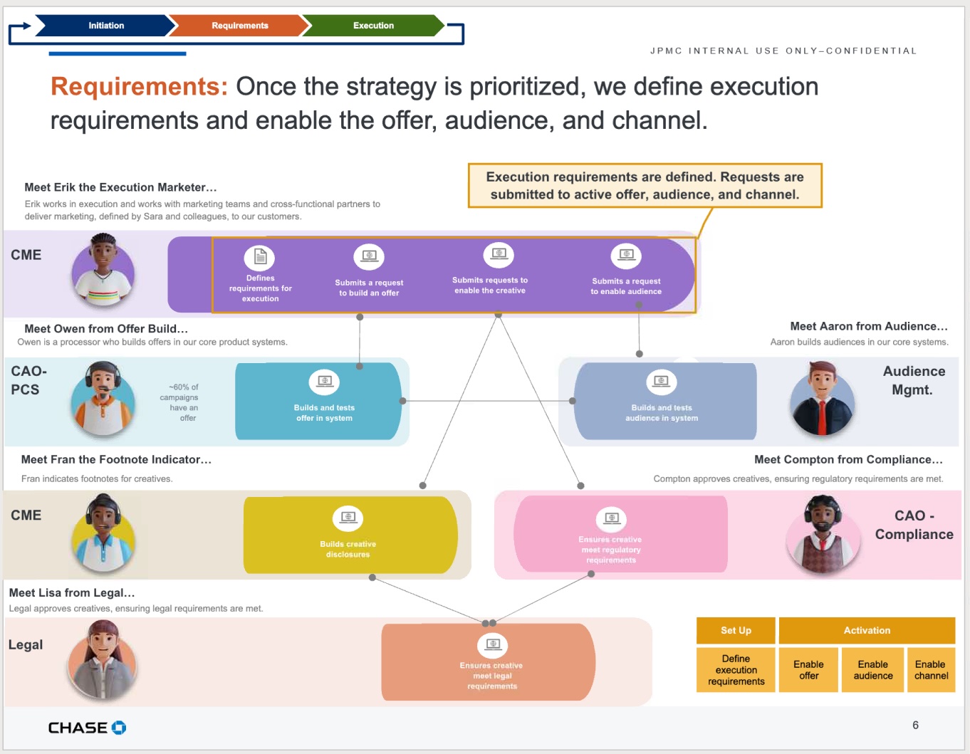 Chase marketers were spending hours juggling multiple disconnected tools just to launch a single campaign. The lack of integration created data silos, inconsistent workflows, and a steep learning curve that slowed marketing operations.